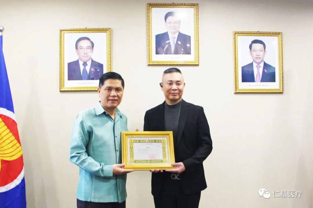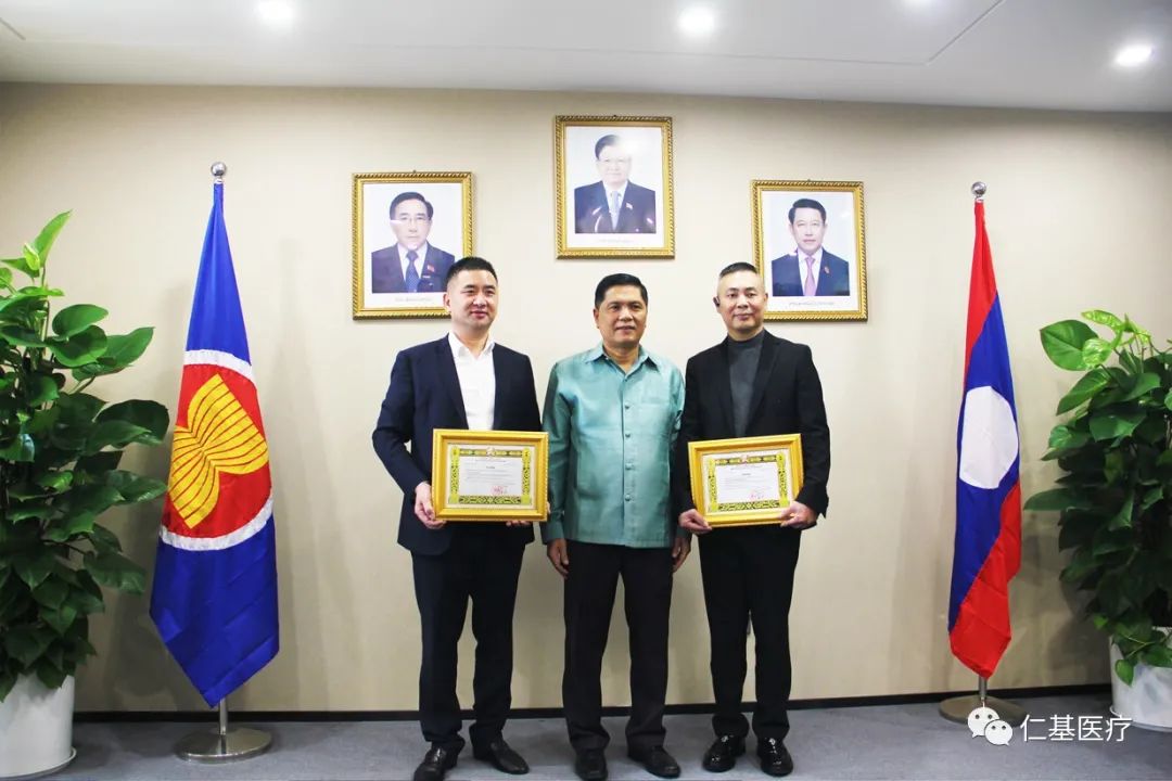 老(lǎo)撾外(wài)交部向仁基醫(yī)療↑®γ頒發的(de)榮譽證書(shū)