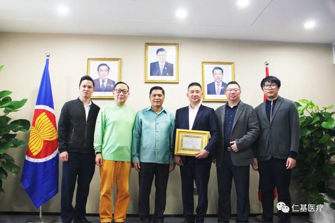 老(lǎo)撾駐長(cháng)沙總領事(shì)館相(xiàng)關官員(yσφuán)與仁基醫(yī)療一(yī)行(xíng)合影(yǐng)
